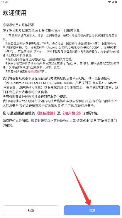 1、首次使用需阅读用户协议和隐私政策,确认无误后点击同意按钮进入登录界面。