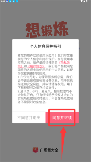 1、启动应用阅读保护指引,点击同意并继续进入。