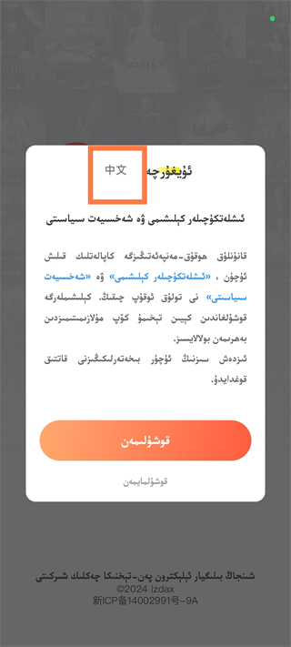 1、打开软件,页面弹出了语言系统设置页面,点击“中文”按钮;