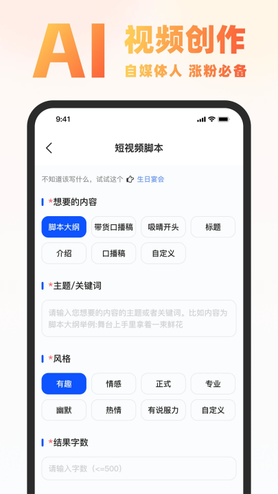 3、AI 文案写作: 仅需提供一个写作主题,无论是公众号推文,还是周报,AI 都能为您妙笔生花,从此告别咬笔头的烦恼。