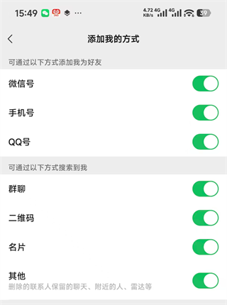 本次的最新版本中,添加我的方式界面新增了 其他 选项,支持删除的联系人保留的聊天、附近的人等。