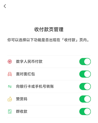在收付款页面中新增管理,支持关闭和打开功能按钮。