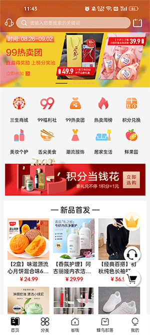 3、点击省钱,在这个页面有许多特价商品以及新人零元福利;