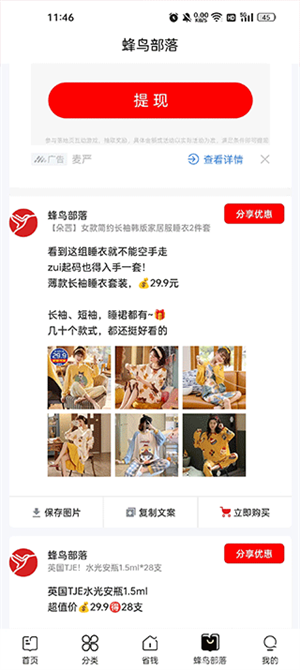 4、点击蜂鸟部落,分享这里的商品可以得到优惠购买福利。