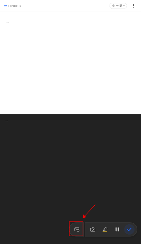 3、点击下方的“悬浮字幕”按钮,app转写翻译的文字会自动缩小为“悬浮字幕”框。