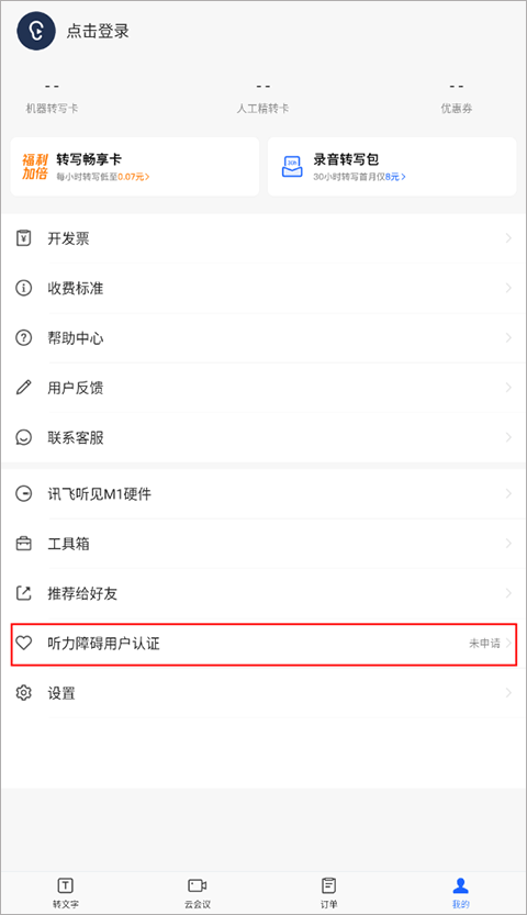 2、申请流程:下载登录讯飞听见App,我的-听力障碍用户认证-上传身份证件-上传残疾证-提交审核-3个工作日内以短信通知审核结果。