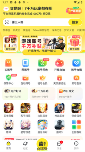 游戏账号交易福利多!
