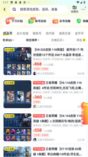 5、全网低价租号玩,海量账号一键上号体验。