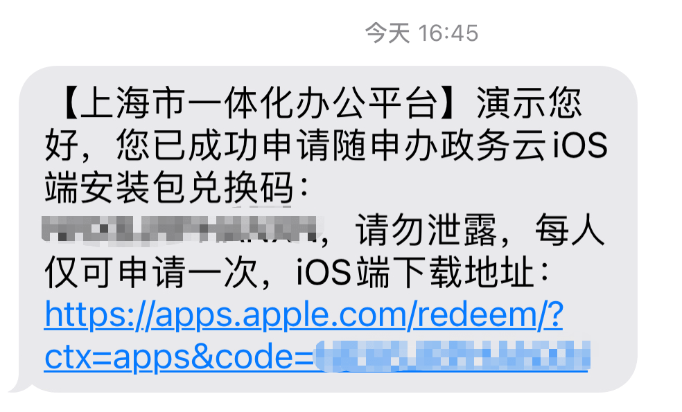 2. 填写真实姓名、手机号和图形验证码,点击申请,后台校验通过后会收到如下短信回复: