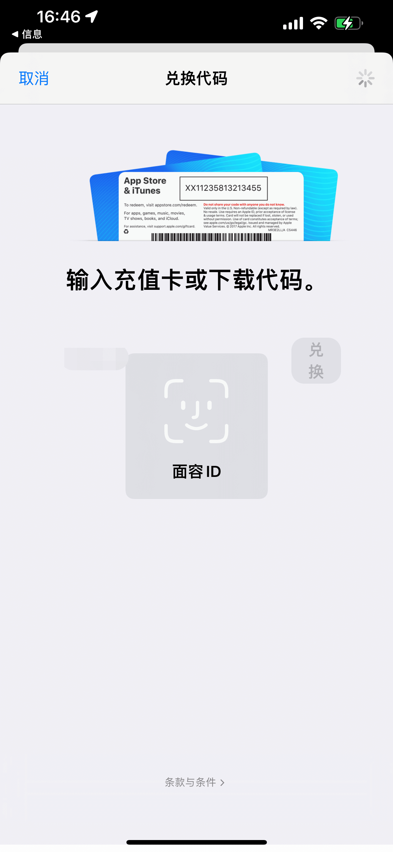 方法一:点击短信中的链接自动跳转至App Store,界面如下,点击兑换(两处皆可),进行人脸认证,如未开启面容ID也可通过Apple ID 的账号密码验证: