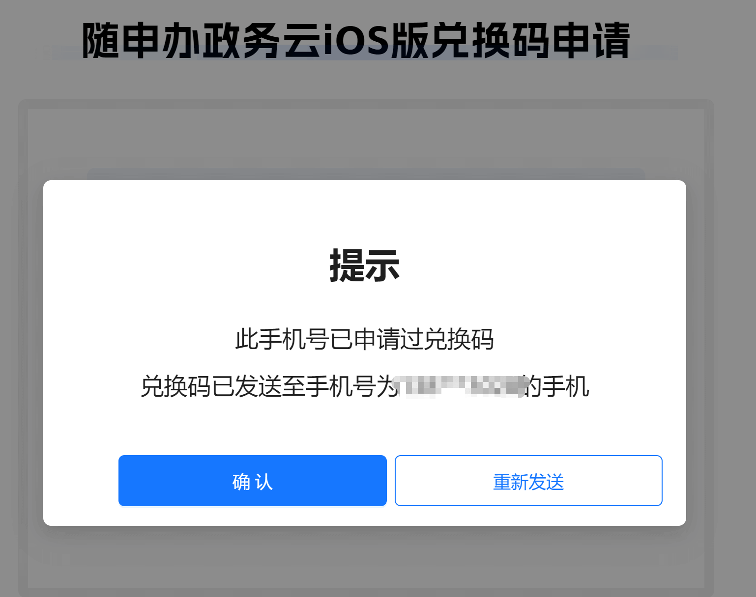 如因手机信号等因素未收到兑换的短信链接,可通过兑换码申请页面的“重新发送”再次获取短信链接。
