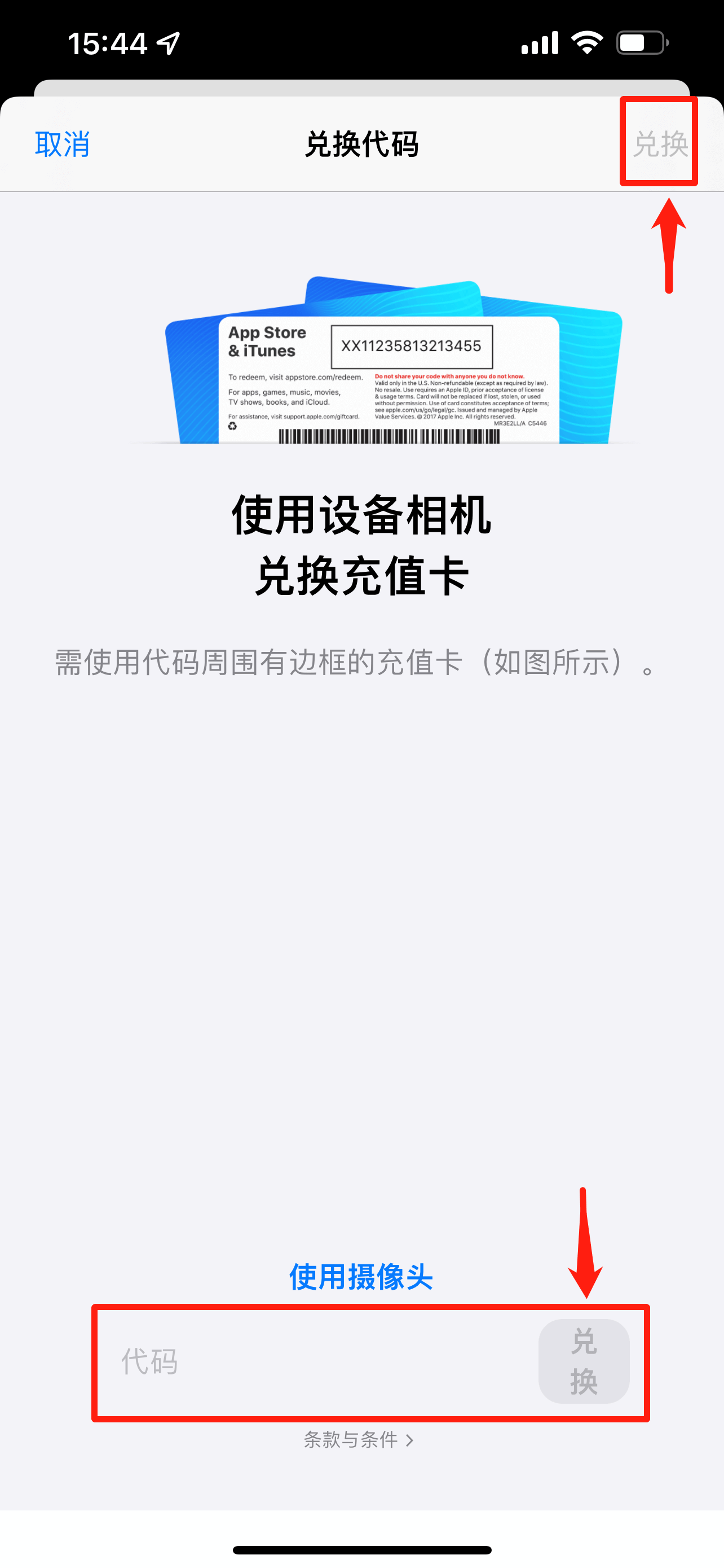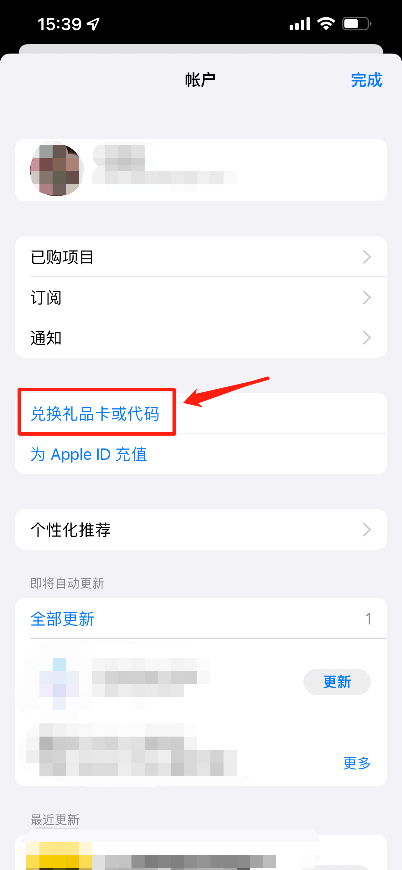 方法二:若链接跳转不成功,可进入App Store,点击账户,点击“兑换礼品卡或代码”,操作如下: