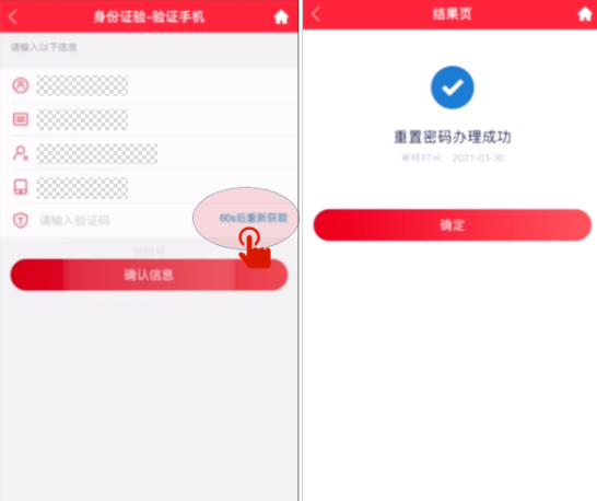 上述步骤认证结束后,进行新密码设置,并提交审核,审核通过后即办理成功!