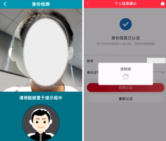 将脸部置于提示框中,根据提示,进行缓慢摇头、点头操作,完成身份检测。