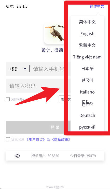 2、在登录界面右上角,可以选择简体中文、繁体中文、英文、日语、韩语等多国语言,方便不同用户操作。