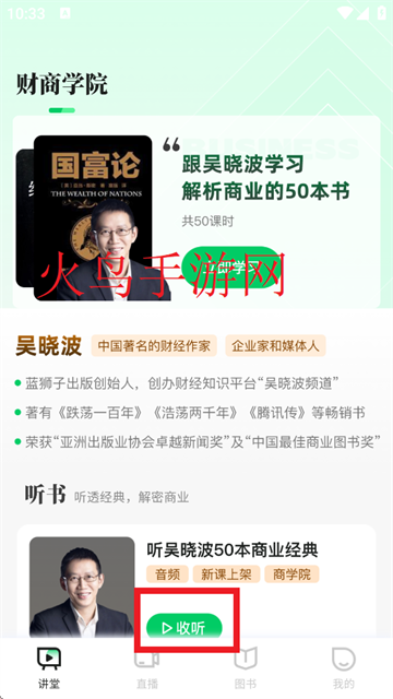 进入首页后,选择需要的课程,选择收听即可