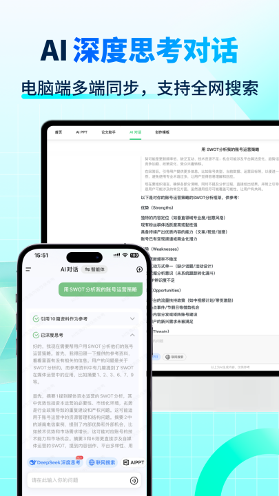 1、ai深度思考对话:电脑端多端同步,支持全网搜索。