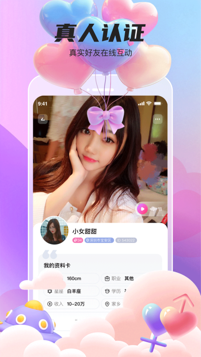 2、真人认证:真人、实名双重认证,智能机审+人工复审,头像就是本人,你约见的TA就是真实的TA。