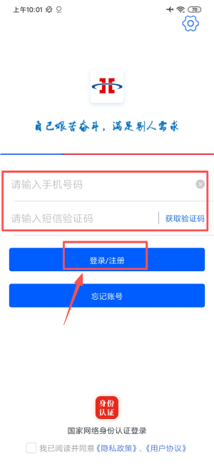 3、填写手机号及验证码确认,完成账号操作流程。