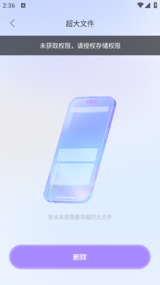 4、点击大文件垃圾清理,超大文件清理需要开启权限。