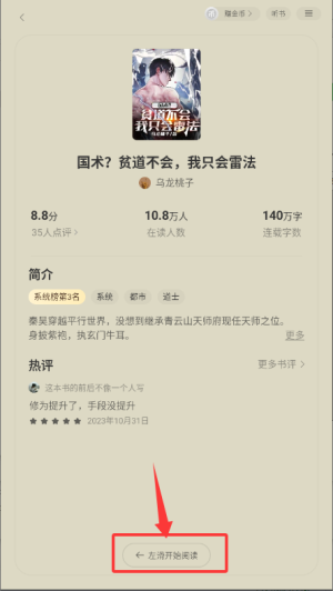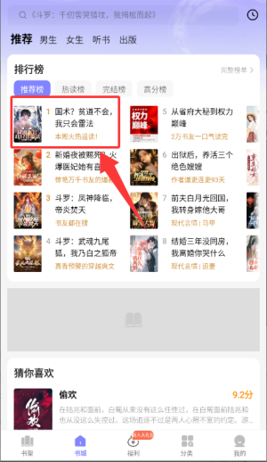 2、于书城推荐榜选择"国术?贫道不会,我只会雷法"作品。