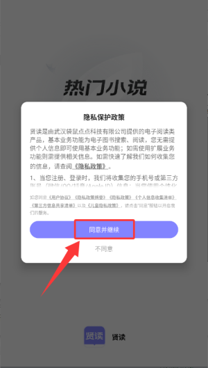 1、在隐私保护政策窗口点击"同意并继续",即可进入应用。