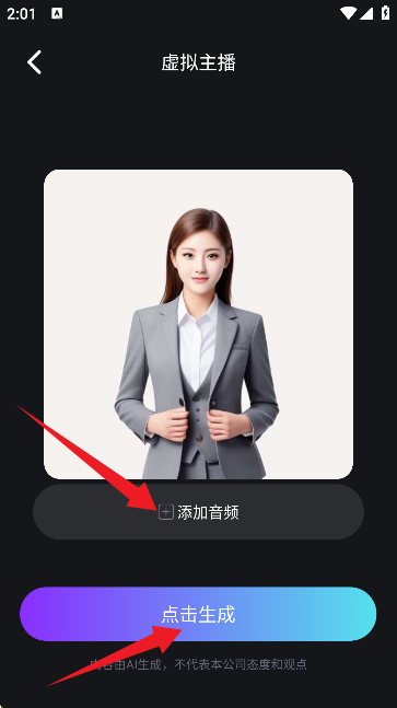 5、然后任意选择一种虚拟主播模板,如图所示,可以添加音频,