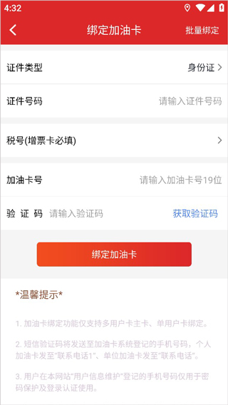 3、目前,一个用户可以绑定多张自己名下办理的加油卡主卡,只能是普票类型的。