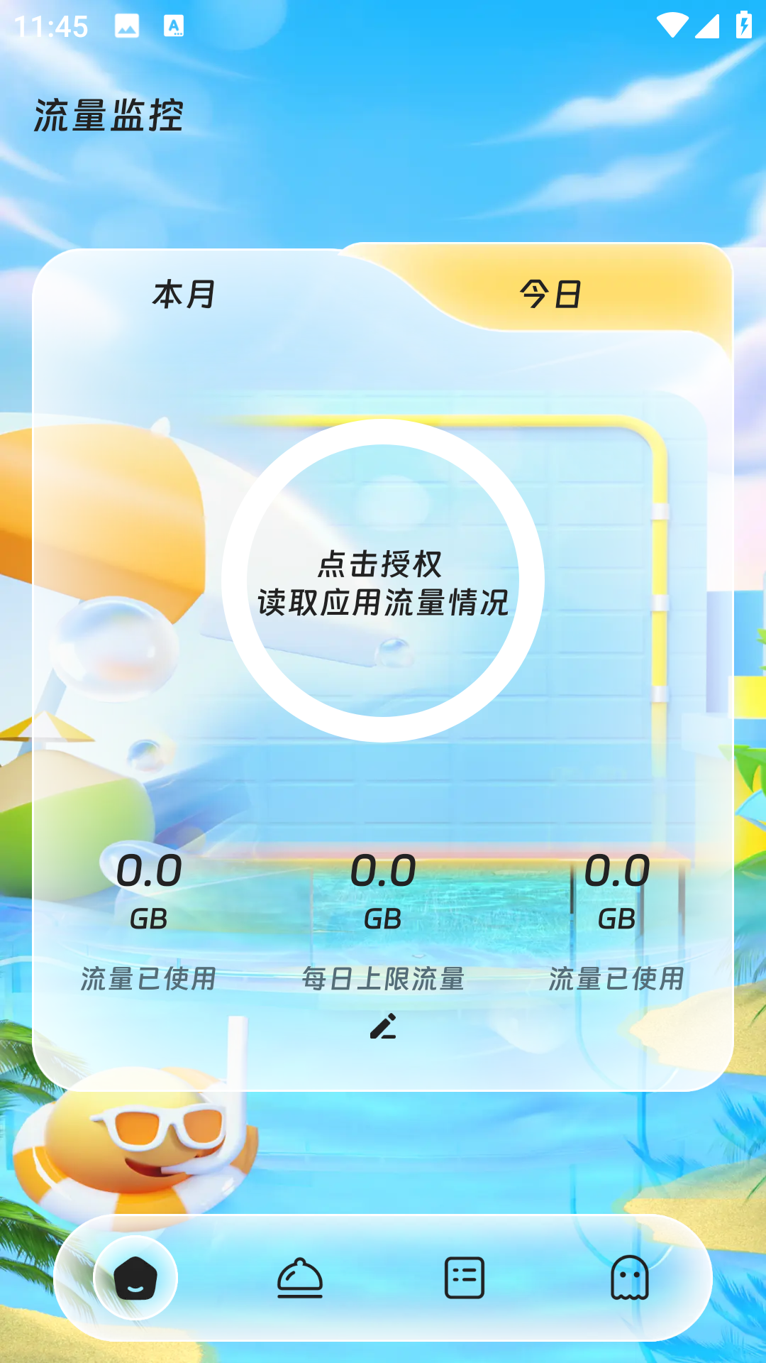 在软件首页,点击授权获取流量使用情况的权限;