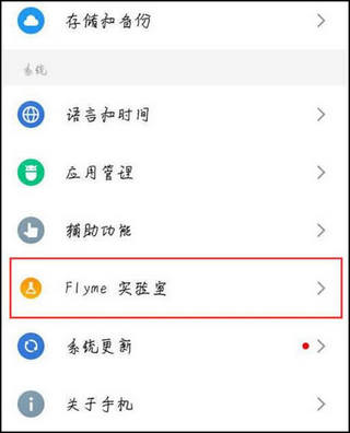 2、在设置页面,找到【flyme实验室】选项,点进去。