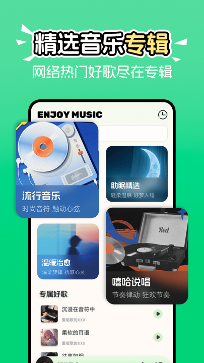 5、精选音乐专辑:网络热门好歌尽在专辑。