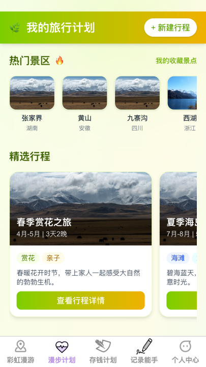 彩虹漫步app是一款专为旅行者设计的应用,旨在帮助用户轻松规划旅行行程、管理预算,以及记录旅途中的精彩瞬间,让每一次出行都充满乐趣与成就感。