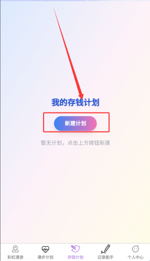 3、存钱计划:用户也可以新建需要的存钱计划,设置存钱目标,有效实现存钱储蓄,监控花费。