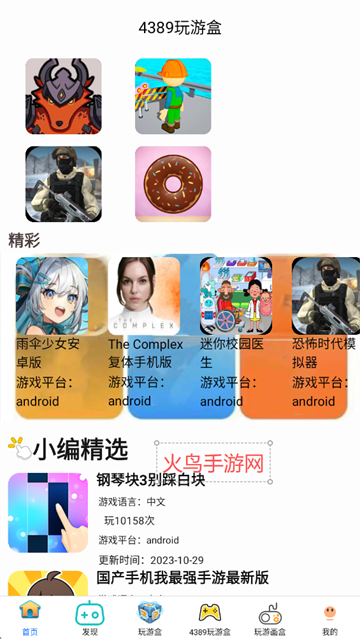 4389玩游盒安卓版是一款手机游戏平台,提供海量游戏下载,部分游戏支持云游戏,无需下载即可直接游玩,这款软件集游戏下载、云游戏、攻略查询、礼包领取和社交于一体,提供海量游戏资源,还有游戏圈和论坛,玩家可加入兴趣圈子、结识朋友、分享游戏心得!