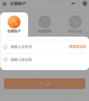 2、在“验证码”一栏填写收到的短信验证码,点击“下一步”进行密码设置及实名验证;