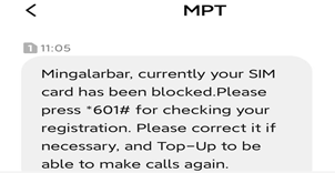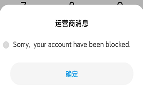 2.收到了MPT发来的手机号码已被冻结的短信: