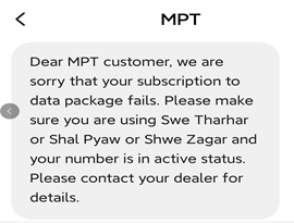 3.充值流量时,收到了MPT发来的流量充值失败的短信英文全文如下: