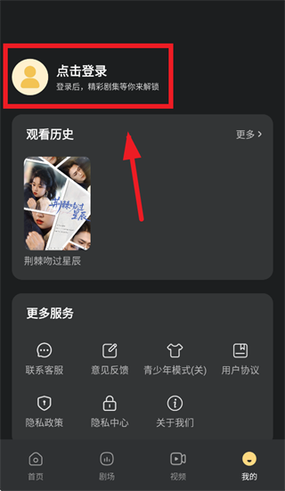打开免费短剧集app,进入后点击我的