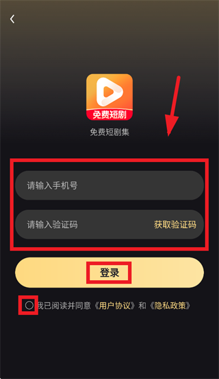 输入手机号,验证码,勾选我已阅读并同意《用户协议》和《隐私政策》,点击登录即可
