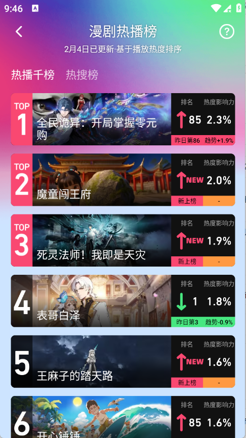 4、排行榜根据当前热度将漫剧进行了排序。
