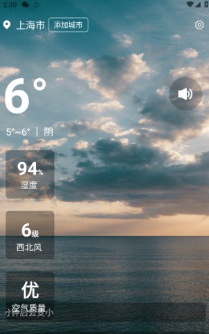 在清爽天气app首页中可以直观查看城市天气情况