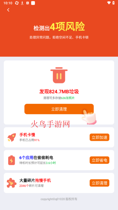 1、手机清理:一键清理无用垃圾。