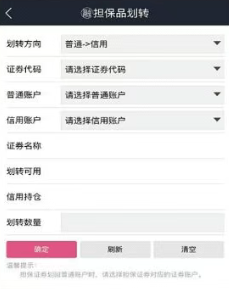 【融资融券】一【担保品划转】,将担保证券从普通账户转入融资融券账户。可转入的担保证券仅限于东海证券公布的担保证券范围。投资者T日操作担保证券转入后,T+1交易日担保证券即可在融资融券账户到账。