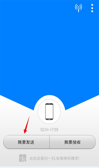 2.画面比较简单,有简单的个人喜好设置,不影响文件的传送功能,软件使用的wifi零流量文件转移。打开旧手机里的换机精灵,选择“我要发送”功能,进入选择文件界面。