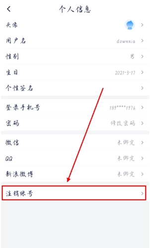 2、接着就选择并点击最下方的【注销账号】,跟着系统的引导一步步操作下来即可。