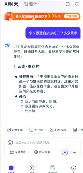 deep深度思考ai免费版 你的全场景智能创作助手,一站式集成多项热门AI功能,无论工作、学习还是生活娱乐,Deep深度思考AI 都是你触手可及的得力帮手。融合九大AI核心功能:智能对话、图文转视频、一键PPT、AI绘图、智能剪辑、照片跳舞、AI作曲、AI口播、照片唱歌。高效创作,从此轻而易举。