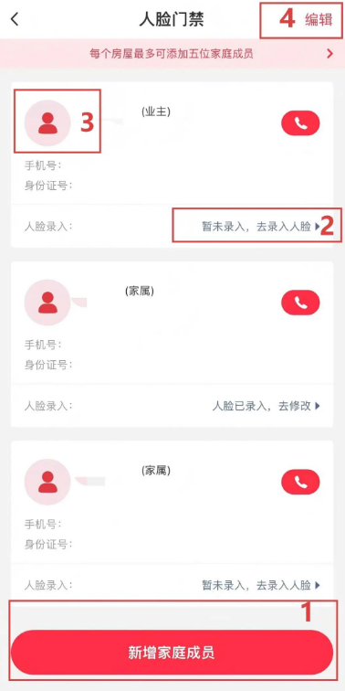 5如添加人数已达上限(可添加五位成员)请联系管家录入