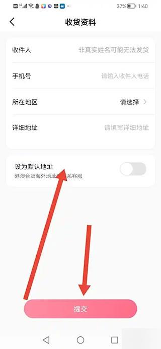 5、 来到收货资料界面,按指引填写收货地址,点击【提交】。