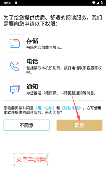 在本站下载全民免费听书app,打开,点击同意