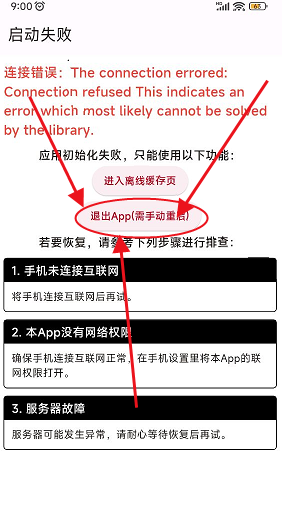 第一次进入会显示网络错误,选择退出重启APP再次打开就是正常的